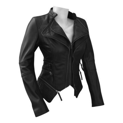 Women’s black motorcycle biker leather jacket