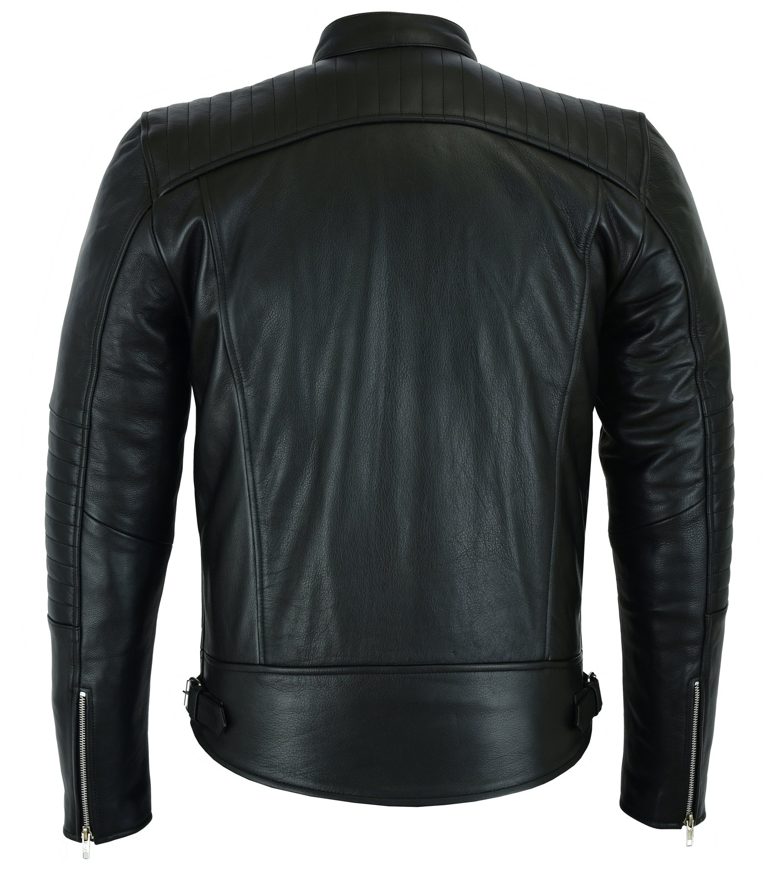 The Blacky Cafe Racer Jacket features a streamlined design with a front zipper closure, adjustable cuffs, and multiple zippered pockets for your essentials. Its tailored fit enhances your silhouette, creating a sharp, masculine look that never goes out of style. The minimalist design captures the essence of classic motorcycle gear while adding a modern touch.