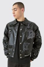 Upgrade your streetwear collection with the Boxy PU Tonal Badge leather Jacket, a versatile blend of timeless varsity style and modern design. Crafted for individuals who embrace bold fashion, this jacket delivers a fresh, contemporary edge while keeping the classic varsity vibe alive.