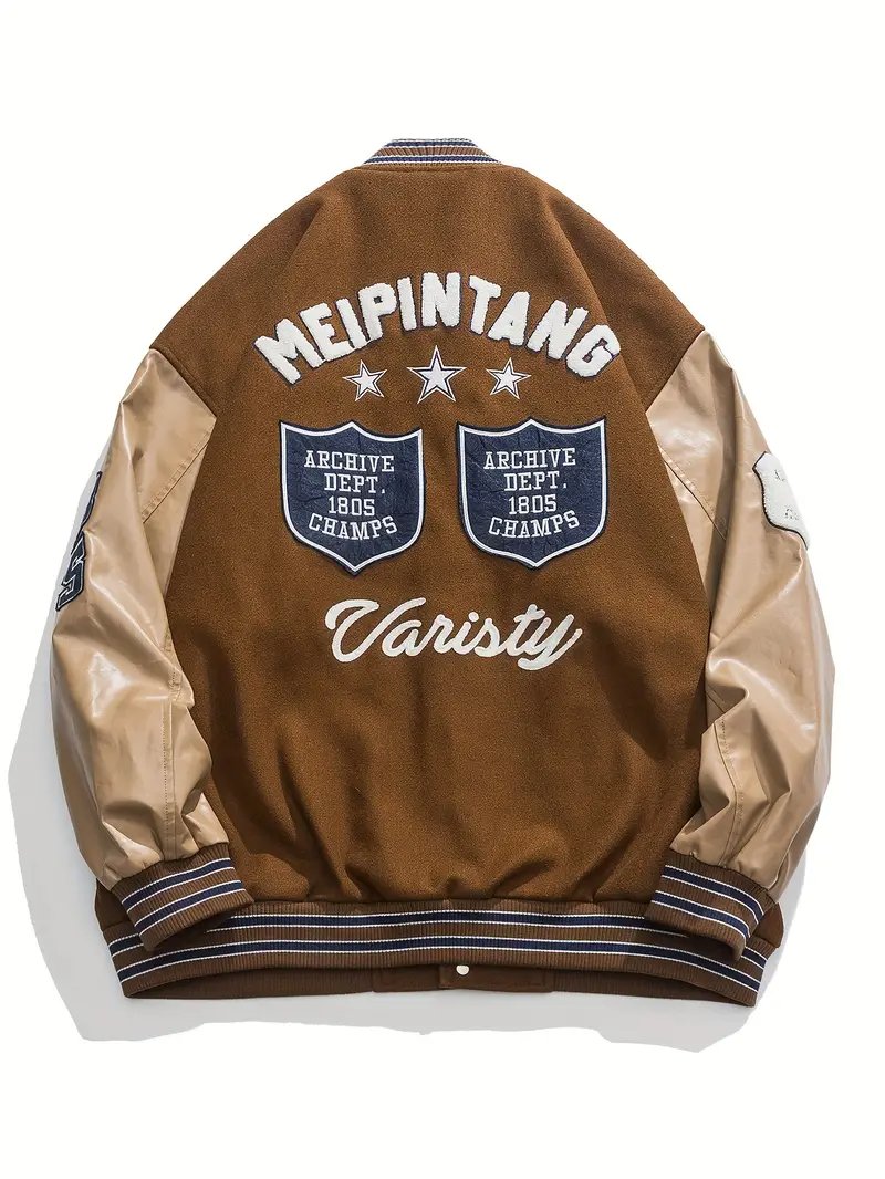 The Embroidery Letters Varsity Jacket blends timeless collegiate style with a modern twist, making it a versatile piece for both fashion and function. Designed with a classic varsity silhouette, this jacket features a durable wool-blend body paired with sleek leather or faux-leather sleeves, giving it the authentic two-tone look that has defined varsity wear for decades.