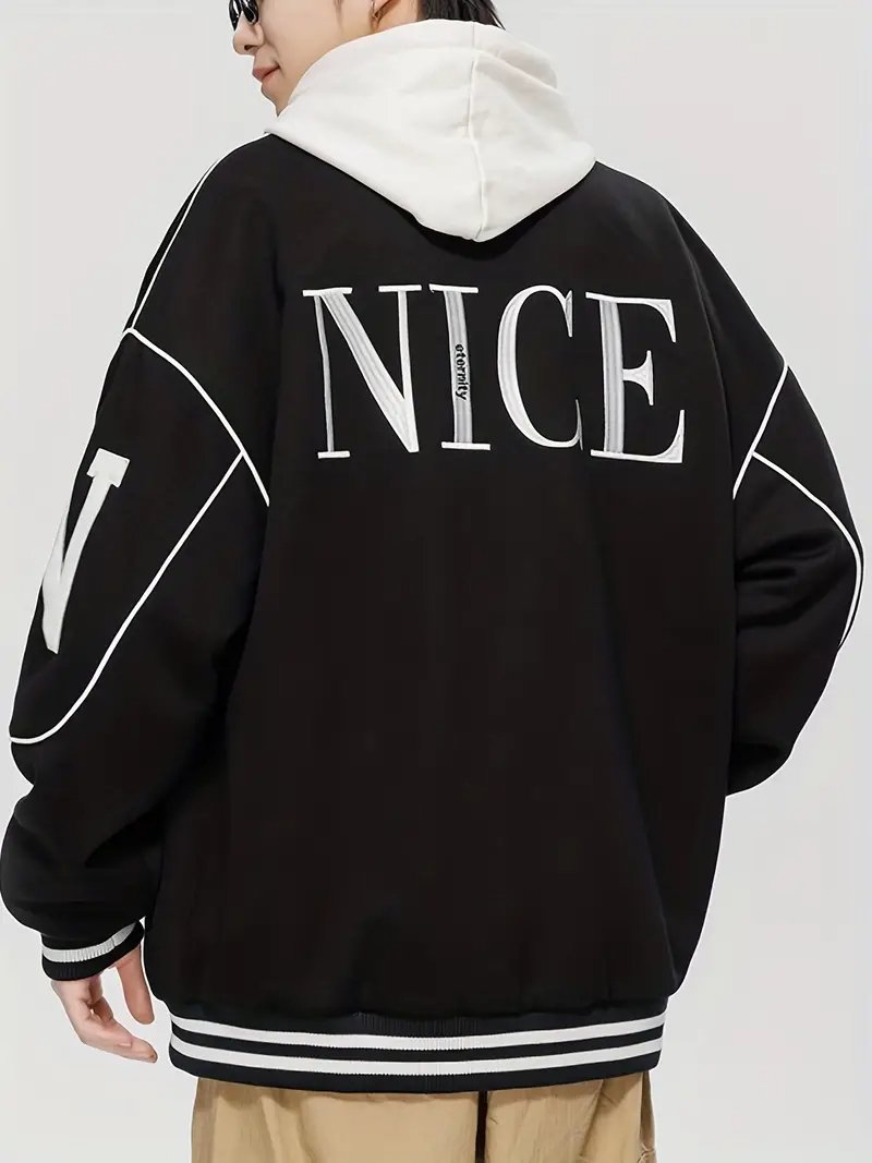 - Classic varsity silhouette with a modern black-and-white contrast