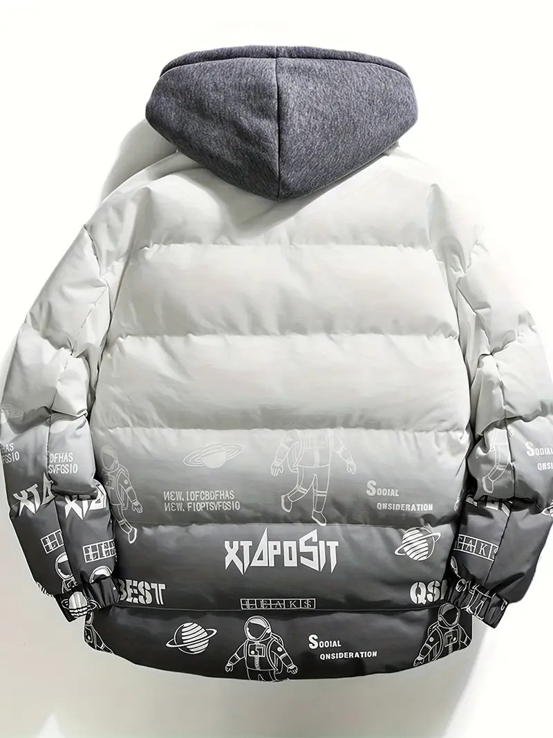 LUXENFY Printed Snow Mountain Hooded Puffer Jacket