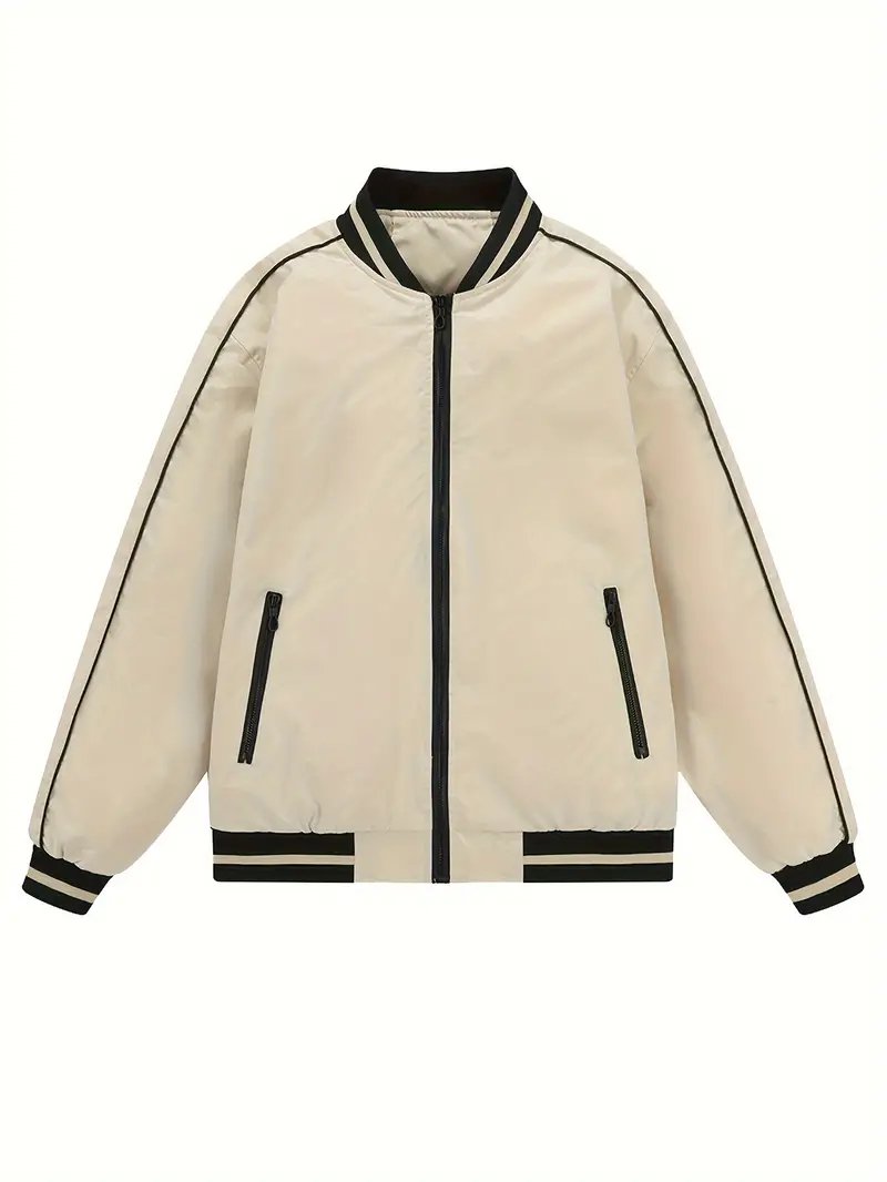 Ribbed cuffs, collar, and hem for a snug and structured fit.