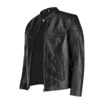 Inside, the Men’s Black Café Racer Leather Jacket is fully lined with a soft, breathable fabric that ensures comfort during long wear. Its mid-weight construction makes it adaptable for multiple seasons — warm enough for cool evenings yet comfortable during mild days. Whether paired with jeans and boots for a rugged street look or combined with chinos for a more polished style, this jacket adapts effortlessly.