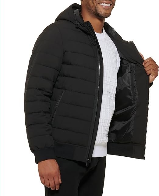 Crafted with a quilted design, the jacket effectively traps heat to keep you warm in cold conditions. The durable yet lightweight fabric allows you to move freely, while the breathable construction prevents overheating, even during extended wear. Its classic black color enhances its timeless appeal, making it easy to pair with casual outfits, travel attire, or sporty looks.
