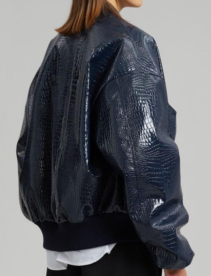 Balancing durability with refined aesthetics, the Midnight Croc Bomber Jacket pairs effortlessly with black denim, tailored trousers, or even layered over a crisp white tee for a striking contrast. It’s the perfect companion for those who value bold expression without sacrificing sophistication. Over time, the jacket develops a distinct sheen that enhances its crocodile texture, adding even more depth and individuality to its look.