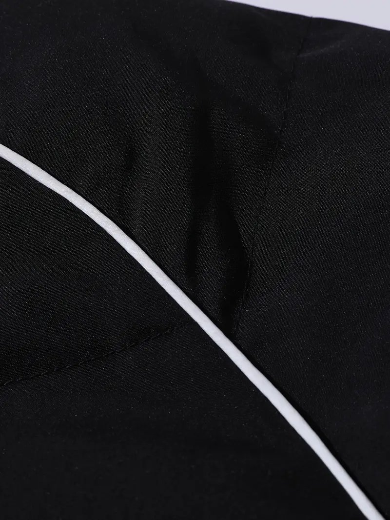 Sleek black design with subtle white piping for a modern, urban look