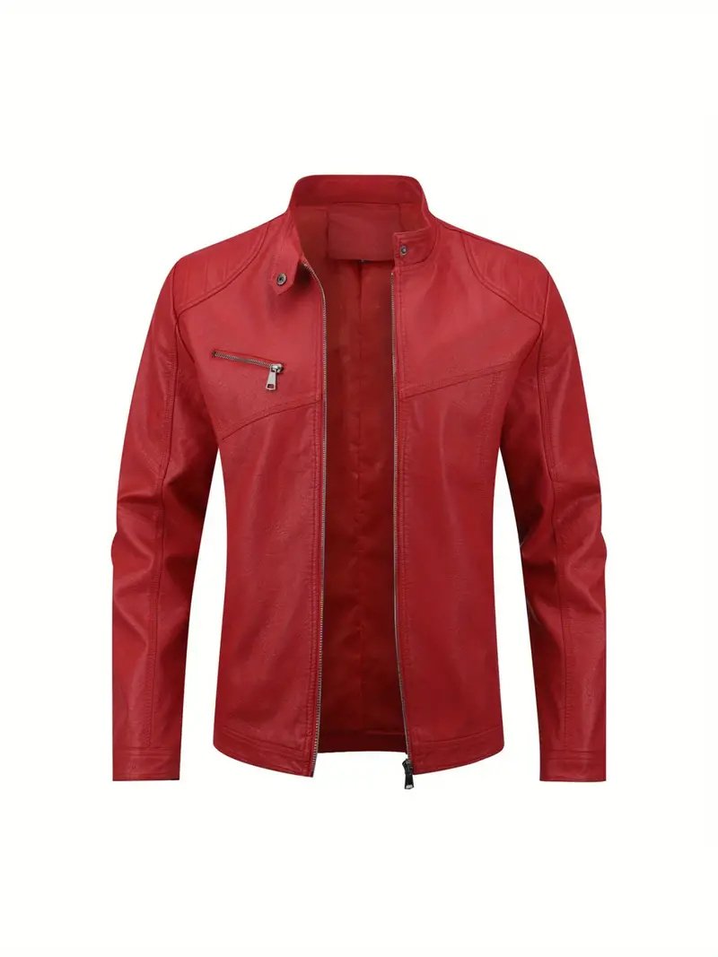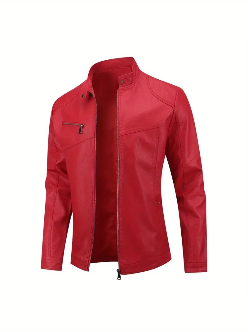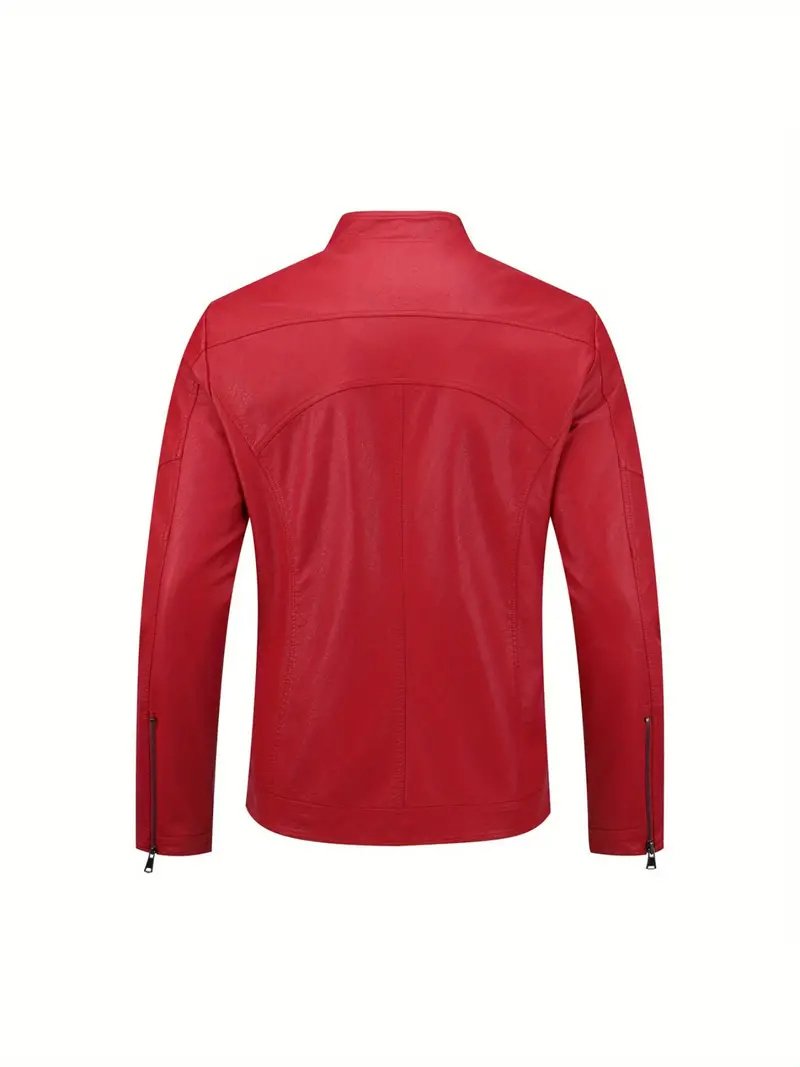 The RED Leather Motorcycle Jacket makes a bold statement with its striking color, premium materials, and timeless biker design. Crafted from high-quality genuine leather, this jacket combines durability, comfort, and style, perfect for motorcycle enthusiasts and fashion-forward individuals alike. Its vibrant red finish ensures you stand out on the road or in any casual setting, reflecting confidence and a daring sense of style.