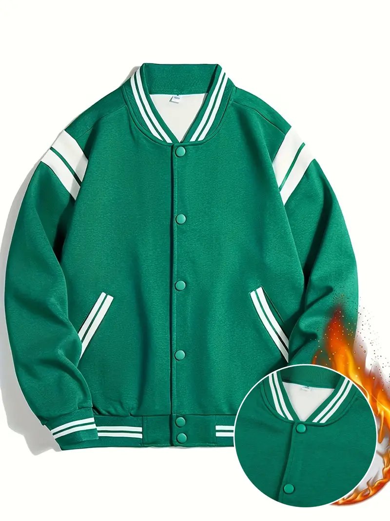 Ribbed collar, cuffs, and hem for a snug and classic varsity fit