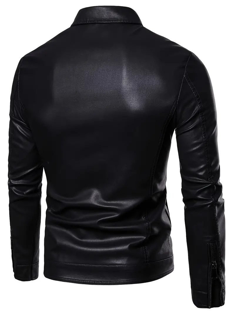 The ShadowForge Leather Jacket is a timeless piece designed for men who value sleek style with a rugged edge. Made from high-quality faux leather, this jacket delivers a polished black finish that complements both casual and semi-formal outfits. Its tailored fit enhances your silhouette, while the sturdy front zipper closure ensures a secure and comfortable wear.