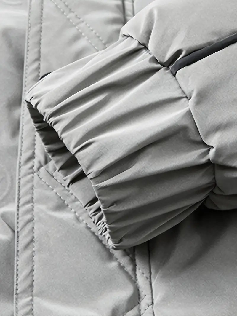 Its design features a high stand collar and an insulated adjustable hood to block icy winds and retain heat. The full-length front zipper includes a windproof flap for extra protection, while elasticated cuffs and a drawcord hem seal in warmth when temperatures drop. Two zippered side pockets keep your hands cozy and essentials safe, and an interior pocket provides discreet storage for valuables like your phone or wallet.