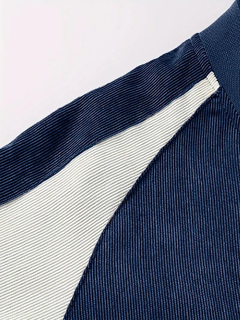 • Contrasting ribbed collar, cuffs, and hem for a snug, sporty fit