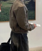Crafted from high-quality suede, the jacket delivers both softness and strength, ensuring long-lasting wear. The natural texture of suede adds depth and character, giving each jacket a unique vintage appeal. A front zipper closure provides convenience, while the structured collar adds a sharp, polished touch. The elasticized hem and cuffs create a comfortable fit, locking in warmth while enhancing the bomber-inspired silhouette.