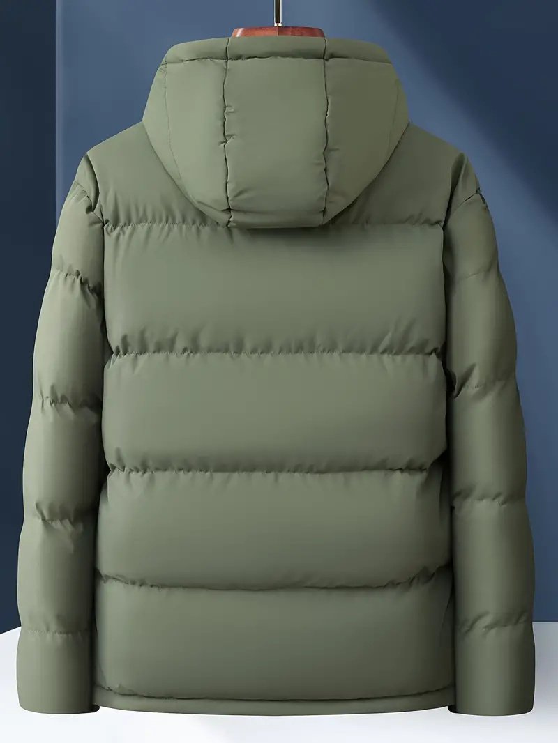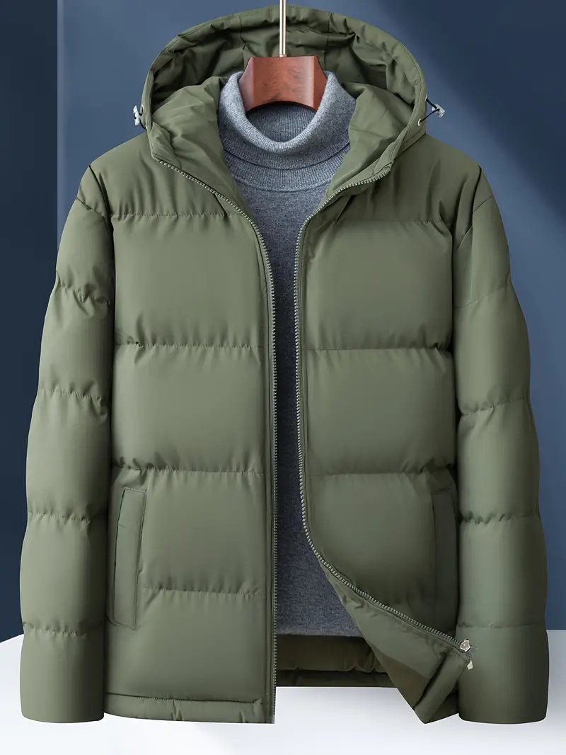 The jacket features a full-length front zipper closure, allowing easy wear and secure fastening. Its padded, quilted construction traps heat effectively, keeping you cozy even on the coldest days. The adjustable hood offers extra protection from wind and rain, while the elastic cuffs and hem seal in warmth for maximum comfort. This versatile jacket layers effortlessly over hoodies, sweaters, or casual shirts, making it an ideal addition to any winter wardrobe.