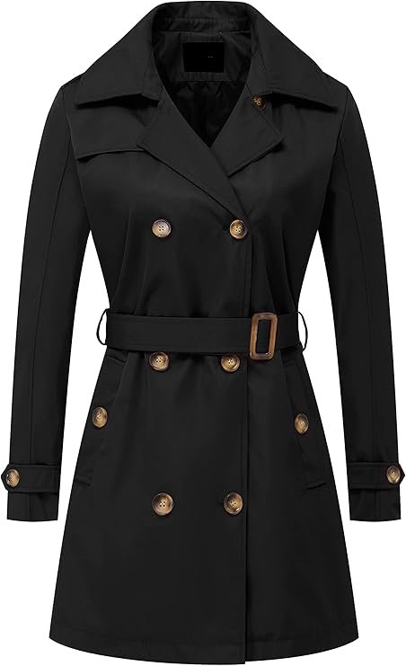 Women’s Classic Black Double-Breasted Trench Coat, a perfect blend of elegance, comfort, and modern style. Designed to elevate any outfit, this coat exudes effortless charm and versatility—ideal for both professional settings and casual outings.