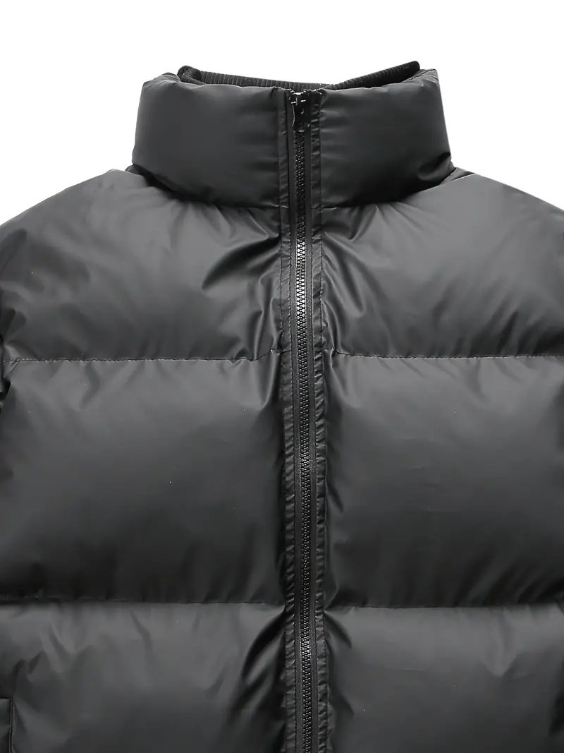 The jacket features a sleek, contemporary design with a puffer quilted pattern that enhances its aesthetic appeal and adds extra padding for superior warmth. Its front zipper closure provides a secure fit and effortless wear, while the adjustable hood offers additional protection against harsh weather conditions. The elastic cuffs and hem seal in heat, ensuring you stay cozy throughout the day.